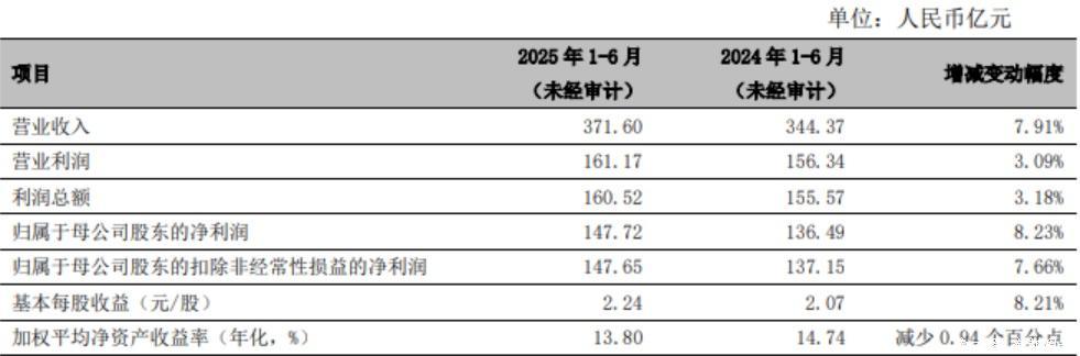 据公告,2025年上半年,宁波银行营收、归母净利润同比增速分别为7.9%、8.2%,增速较一季度分别提升2.3个百分点、2.5个百分点。